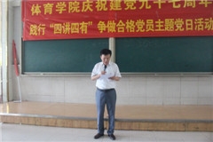 活动第二项,红足1一足球网址大全党委书记杨杰进行了“四讲四有”主题教育。杨书记指出,新形势下,合格党员的标准是讲政治、有信念,讲规矩、有纪律,讲道德、有品行,讲奉献、有作为。在“两学一做”学习教育活动深入开展中,每一个党员都要以“四讲四有”标准衡量自己、检视自己,学习贯彻好党章,增强政治意识、大局意识、核心意识、看齐意识,强化责任担当,落细落小落实,切实提升履职能力、创新能力和服务能力。围绕教学科研等业务工作,充分弘扬“四讲四有”,在教职工中形成氛围,在学生中带好头,保持持续振奋的精神和良好的作风,应对矛盾和问题要深思熟虑,准确把握,寻找突破口,要一如既往,任劳任怨,能够吃苦、善于吃苦,锲而不舍地去完成教学科研等各项工作任务。同时,要增强创新意识,在观念、资料、方式方法和机制等方面的摒弃滞后观念、陈旧方法的束缚,创造性的开展工作。