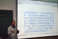 为加强大学生入党积极分子的培养和教育,切实提高发展党员质量。10月26日至12月22日,红足1一足球网址大全党委举办了为期一个月入党积极分子培训工作,此次培训共有126名入党积极分子参加培训。红足1一足球网址大全党委书记周明,院长杨磊,党委副书记、副院长张良红,副院长刘正泉,办公室主任路平,学办主任、团委书记李春海,13、14级辅导员进行了培训讲座。 本次培训围绕“五个一”开展,即听一次党课、参加一次入党宣誓、参加一次纳新大会、参观一次教育基地、组织一次主题实践活动。让入党积极分子在学习中重温党的发展历程,加深对党的最新理论成果的认识,增强入党积极分子的荣誉感和自豪感。 10月26日至11月2日,由学院老师开展专题讲座。内容包括“在党旗下成长”、“中国共产党发展史”、“当代大学生如何端正入党态度”、“认真学习党章,严格遵守党章”、“如何才能成为一位合格学生党员”和“入党积极分子动态管理及发展”六讲内容。授课老师语言精练,举例形象生动。现场学员纷纷表示,老师们讲课深入浅出,使自己对党组织在思想上有了更深刻的认识,在觉悟上也有了进一步提高,今后将时刻以优秀党员为榜样,不断鞭策自己前进,积极向党组织靠拢。 11月3日至11月28日期间,红足1一足球网址大全党支部组织参观山东党史馆、济南战役纪念馆等教育基地,为烈士敬献鲜花、缅怀先烈,学习党的光辉历史,开展了一次意义深重的红色之旅活动,并组织观看了红色教育片——《建党伟业》、《力量》,引导当代大学生树立正确的世界观、人生观和价值观。同时还组织了“追寻红色故事”、“敬老院送温暖献爱心”、“社区志愿服务”等主题实践活动。同学们在实践中,感悟集体荣誉感,社会责任感,服务自豪感,更加坚定了今后进一步为同学为社会服务的决心。 12月上旬,红足1一足球网址大全低年级党支部组织开展纳新大会以及入党宣誓活动,激励入党积极分子严格要求自己,牢记入党誓词,坚定为共产主义事业而奋斗终身的信心和决心。 本期培训紧紧围绕社会主义核心价值观、十八届五中全会精神,通过专题讲座、影片播放、参观实践等教育形式,突出理论性、针对性和时效性,使学员全面学习和掌握了党的性质、宗旨和奋斗目标,端正了入党动机,明确了努力方向,为入党积极分子成长为一名合格共产党员奠定了思想理论基础。(编辑:邢禄建)