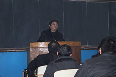 杨磊院长作了题为“坚持求真务实 强化内涵建设 实现‘十二五’良好开局”的工作总结报告。他从顺利通过学位授权评估、提高人才培养质量、加强师资队伍建设、创新学生工作机制、扎实推进招生就业工作、强化校园文化建设、改善办学条件等几个方面对学院2011年工作进行了全面的总结。他指出,2011年是学院办学历史上具有里程碑意义的一年,学院将以内涵发展为主线,以培育特色为重点,积极推进学科专业、人才培养、教师队伍、校园文化、科学管理、办学条件六项建设,充分调动了全院教职员工的积极性,以学科专业发展和人才培养为核心的内涵发展取得了明显进展。同时,杨院长展望了2012年工作,并提出了工作要求。他强调,2012年,学院要进一步提高人才培养质量,进一步提高科研水平,进一步推进人才强院战略,进一步推进校园建设和管理。