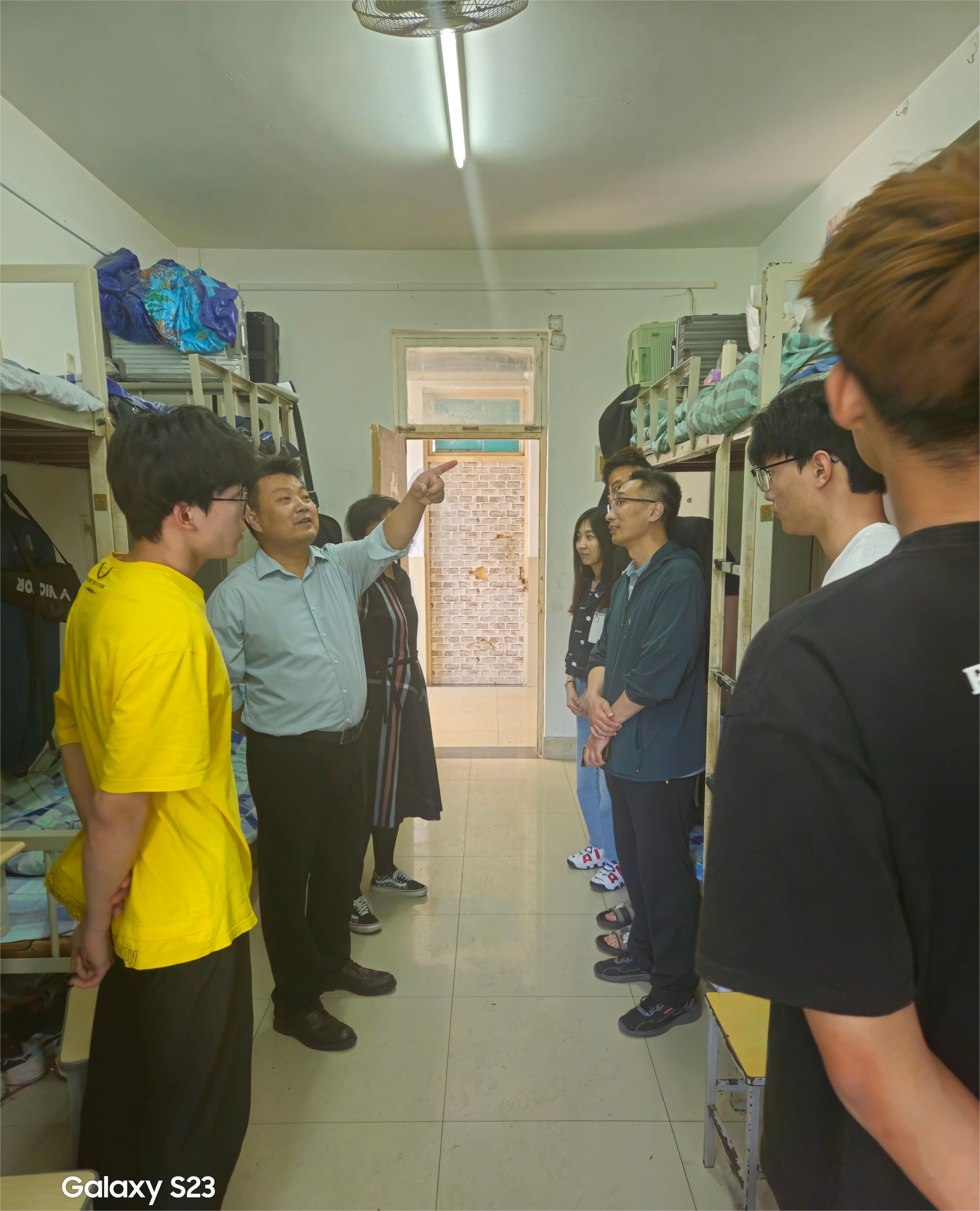 此外,在检查过程中,学院党委书记孙成豪与学生们进行了深入交流。孙成豪书记提醒所有同学要时刻绷紧安全这根弦,不能有丝毫的松懈和麻痹大意,并嘱咐同学们要养成良好的卫生习惯,共同营造干净、舒适的宿舍环境。一个整洁的环境不仅有利于同学们的身心健康,更能培养大家的自律精神和团队协作精神。他希望同学们要定时打扫宿舍内务卫生,保持室内通风,预防疾病的传播,共同营造一个和谐、安全的学习和生活氛围。