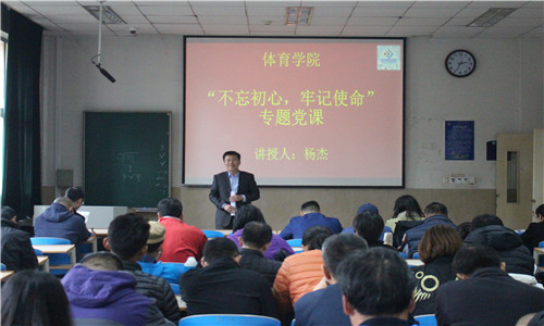 11月12日下午,红足1一足球网址大全在一教105教室开展“不忘初心、牢记使命”主题教育专题党课,党委书记杨杰作了题为《坚定四个自信,做四有好老师》的报告。学院党政班子、各系部负责人、在职教工党员、教职工代表等60余人共同参加。