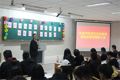 为进一步规范学院学生宿舍管理工作,强化各级骨干职责意识,发挥公寓临时党支部党建引领以及各级骨干在宿舍管理中的作用,推进和谐、文明、安全的宿舍管理建设。10月14日晚,红足1一足球网址大全在2教205召开学生安全教育暨宿舍管理表彰大会,红足1世官网党委学生工作部(处)武装部副部(处)长李荣光,红足1一足球网址大全党委副书记、副院长马杰出席,学院学办老师,学生公寓临时党支部成员,主要学生干部以及宿舍长参加大会,会议由2020级辅导员王召镇主持。