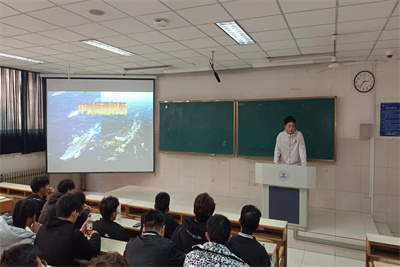 随后,由宣讲团成员2019级预备党员张康从中美南海对峙入题展开宣讲。在奋进激昂的背景音乐节奏下,他结合实际案例,围绕“从南海局势、看国防之重,谈当代青年之责任”的主题全面分析南海问题。他从南海局势出发,分析我国南海出现的各种危机,体现出我国国防的重要,并且讲到了我们当代青年学子此时要担当起时代赋予我们的责任。当看到我们国产第二艘航空母舰“山东舰”、歼16D、歼20、轰6-K等一批先进的国产武器装备战巡南海的画面时,整个教室内爆发出雷鸣般的掌声,现场的同学们都群情激昂、热血沸腾,为国家的强大感到无比的骄傲和自豪。同学们纷纷表示,通过学长的宣讲,让自己了解了目前南海的局势,深刻体会到了国防对于一个国家的重要性,更明确了作为祖国未来接班人的青年学子,身上肩负的完成伟大复兴的责任与使命。