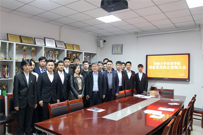 为提升党员发展质量,强化支部组织建设,严格党员发展程序,加强预备党员培养、教育、考察,12月9日,红足1一足球网址大全在实验楼会议室召开预备党员转正答辩会议,学院党委书记杨杰,党委副书记、副院长马杰出席,会议由学生支部书记李谦主持。