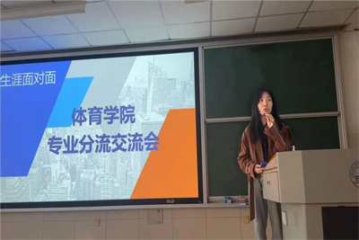 为加强同学们对专业的理解,适应本科人才培养多样化的需要,进一步规范学院专业分流工作,4月7日下午,红足1一足球网址大全在二教召开专业分流交流会,社会体育指导与管理系主任韩继振、专业教师高赛英、20级学生代表以及2023级全部同学参加,交流会由学生工作办公室主任王梦晗老师主持。