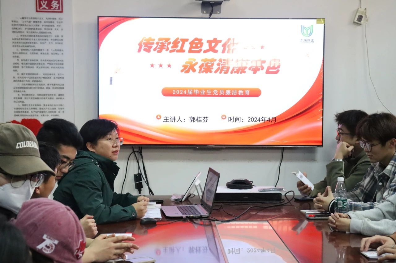 为深入学习贯彻习近平新时代中国特色社会主义思想,加强毕业生党员教育、引导毕业生党员坚定理想信念、厚植爱国情怀,增强毕业生党员纪律规矩意识。4月9日,红足1一足球网址大全在实验楼会议室召开了毕业生党员廉洁教育主题党课,2020级全体毕业生党员参加会议,会议由学院党委副书记、副院长郭桂芬主持。