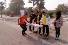 上午7点,志愿者们身着黄色上衣来到指定地点集合完毕。比赛开始前,志愿者们走进园博园,分成四个小组,由总裁判长带领着学生志愿者熟悉运动员的比赛场地,并把学生志愿者分布在各自负责的地方。在运动员奔跑过程中志愿者们积极地给运动员递水,并且为运动员加油。大家热情洋溢地聚集在跑道的周围,为运动员们热心服务在第一线。比赛在运动员的奋力拼搏和群众们的欢呼雀跃中圆满结束,活动后由每个组长集合组员,并合影留念。