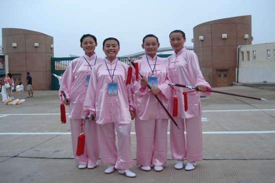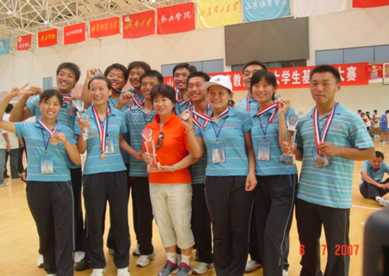 参加2007年山东省第二届体育教育专业大学生基本功大赛武术比赛女队员合影